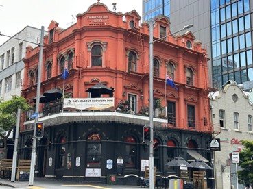 Several of the ones that were open were still charging a “holiday” surcharge. We found lunch at The Shakespeare, [Right] billed as NZ’s oldest brew pub (1898). At the start, we were actually seated outside on the balcony, before the rains came. It showered off and on as we wandered around town before heading back to the hotel to watch darts and cricket – sports we don’t get to see at home.