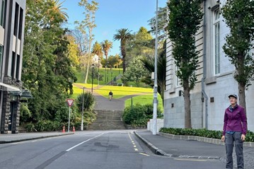 After dinner downtown, we revisited a city square which we had seen before, and then up a long, steep hill [which we had not yet visited – Below] to the most beautiful part of the city with statues and lovely flower gardens in bloom. It seemed to be part of the campus of University of Auckland. This was a precious gem that we just happened upon! Fortunately, we were already packed for our Friday m/c pick-up and departure.